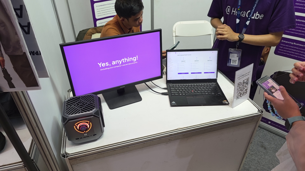 Our team spent the day engaging with a diverse crowd of developers, students, and industry professionals. The star of the show was undoubtedly the Hexacube, which we displayed prominently as the "World's First AI in a Box".